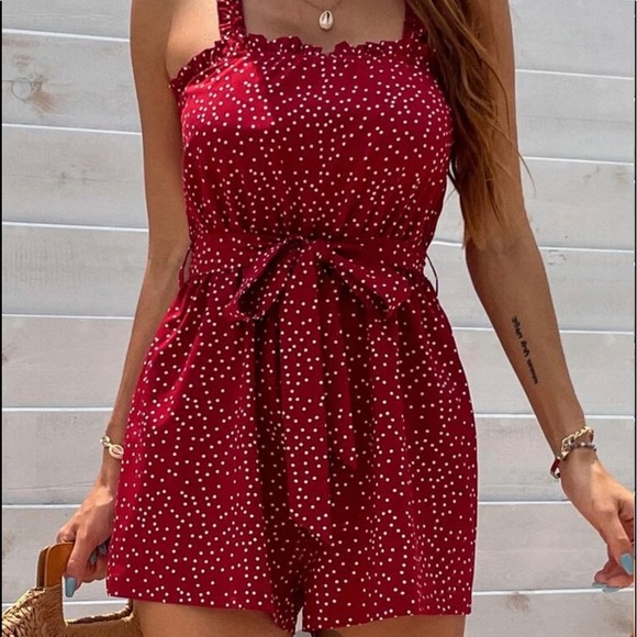 Polka Dot Frill Trimed Cami Romper