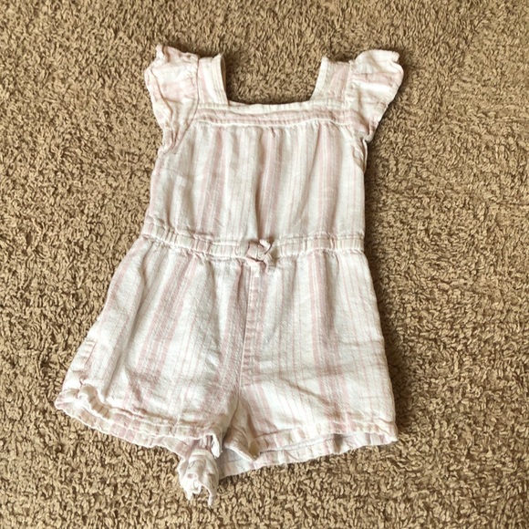 Light pink/cream striped romper. Buttons at bottom