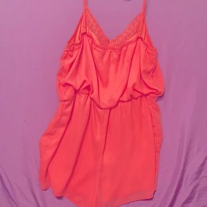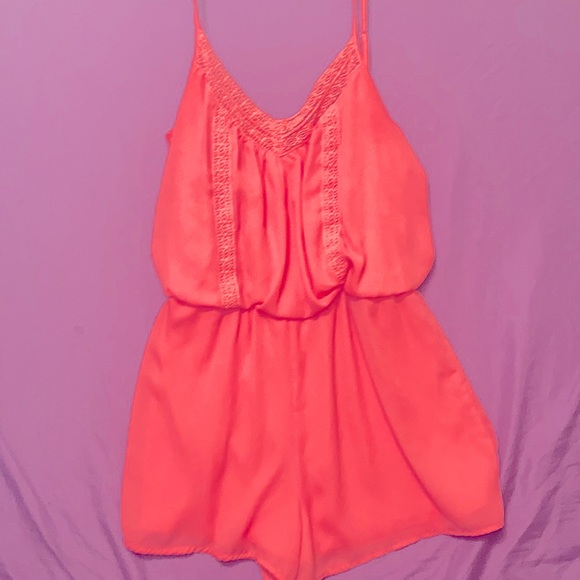Coral romper in a sheer material brand new never been worn