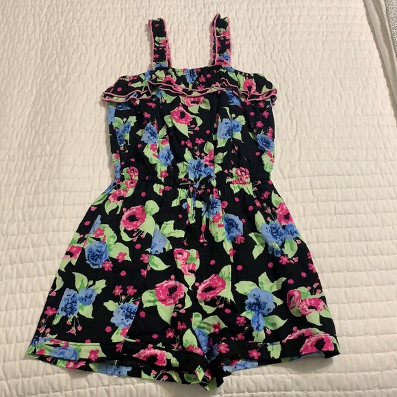 Kid’s floral romper. Scrunch waist with a tie detail