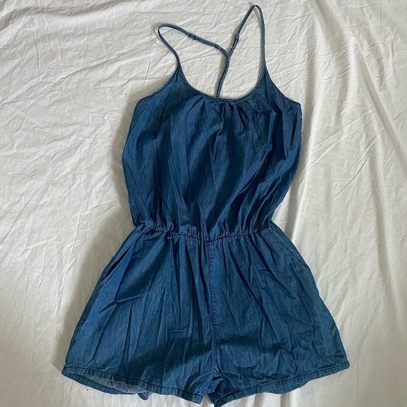 Denim styled romper. Not denim material. Very soft and moveable material. Only worn once.