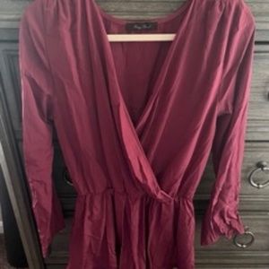 Long-sleeve purple romper. The bottom is lined with ruffles. Would be super cute for Valentine's Day!!