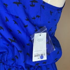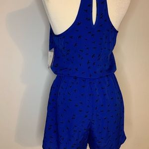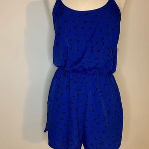 Romper color azul con estampado de aves y tirantes finos..poliéster la tela es ligera perfecta para el verano