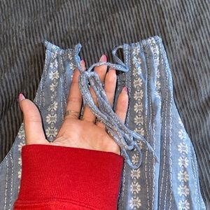 - tie around waist & halter tie behind neck