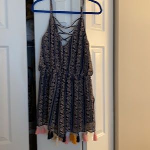 This Blue floral romper with tassels, lined never worn perfect for the summer season ahead!!!