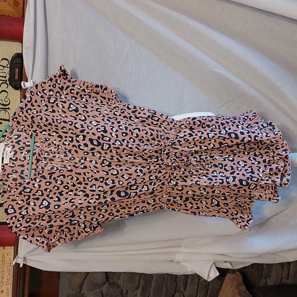 adorable lepord romper with ruffled bottom and sleeve, crisscross top, thin cool material.