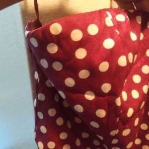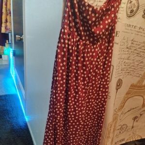 Beautiful polyester satin strapless romper true medium wide leg pantsuit romper that zips on the side. Can fit a medium/large. Maroon/ cream gorgeous for summer nights or days