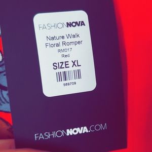 This is a red floral NWT Fashion Nova brand shorts/ romper. It ties at the waist. Long sleeve , but It's is to be worn off the shoulders. the material does not give at all. (my normal top size is a small-medium, my bottoms size is xl+. this particular romper has absolutely no give and the legs were made to narrow to fit me comfortably. ) This select item, is very cute, I'm very sad to see it go, but it doesn't work for my body type.