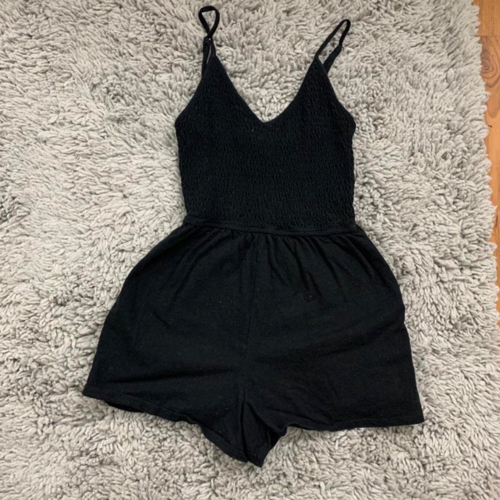 Black smocked material romper