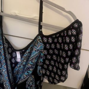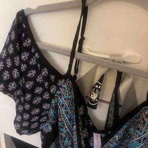 Shorts and top BOHO vibe straps arm hole part hangs down see pic super cute, cool and comfortable.