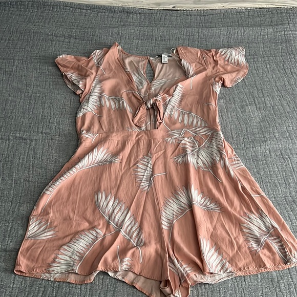 Super cuter romper tie front and little opening on the back, stretchy waist band. No stretch, but true to size. Worn once