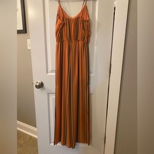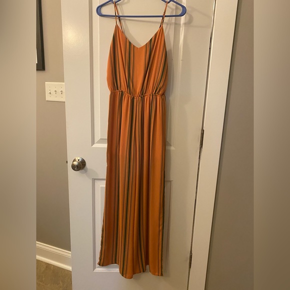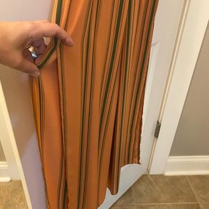 Pants romper, orange with green stripes and slit on both sides of legs