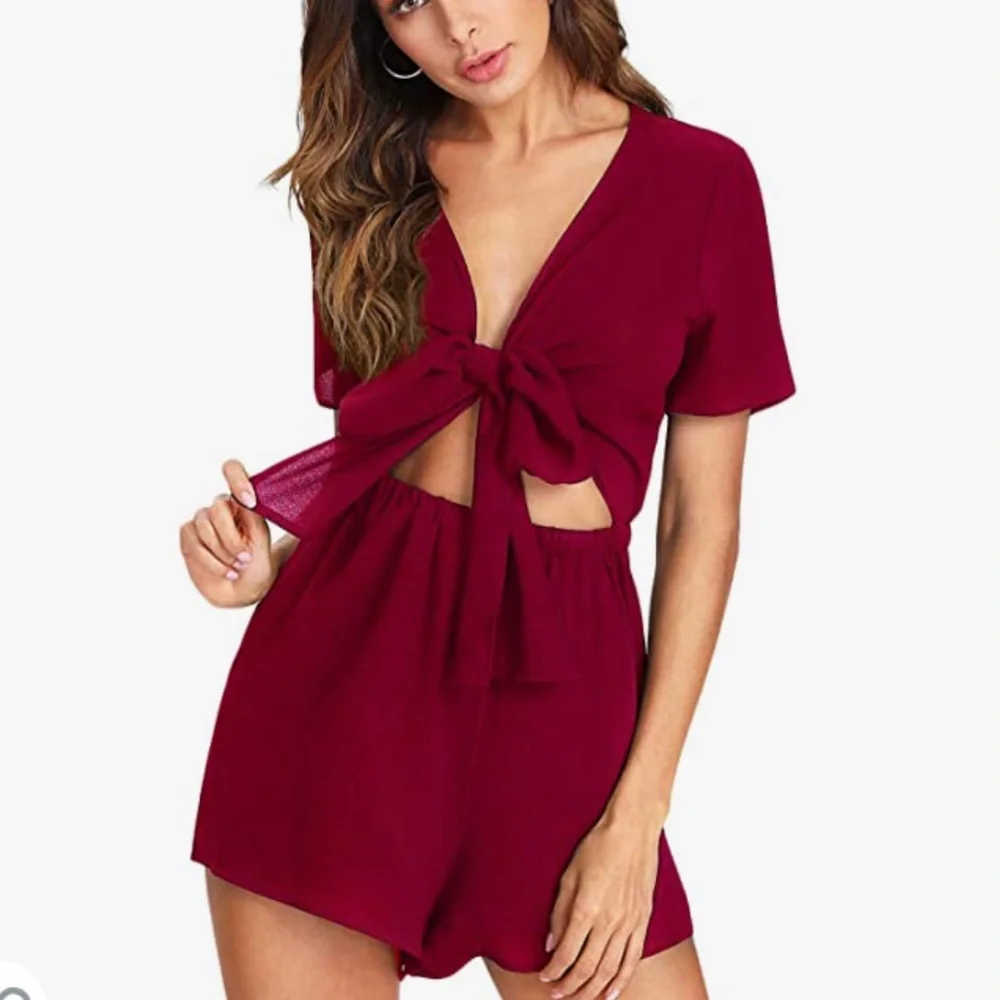 Magenta front tie romper