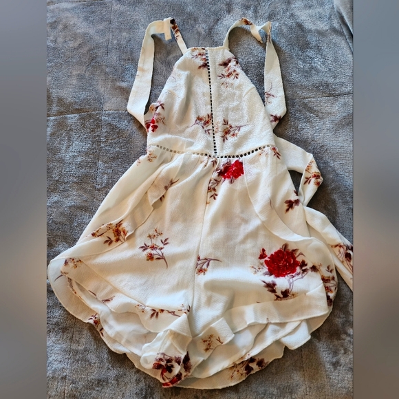 This Romper is the cutest thing ever! The only reason I haven't worn it is because I have never traveled anywhere to wear it too! The tags say small but I would say it is closer to an extra small.