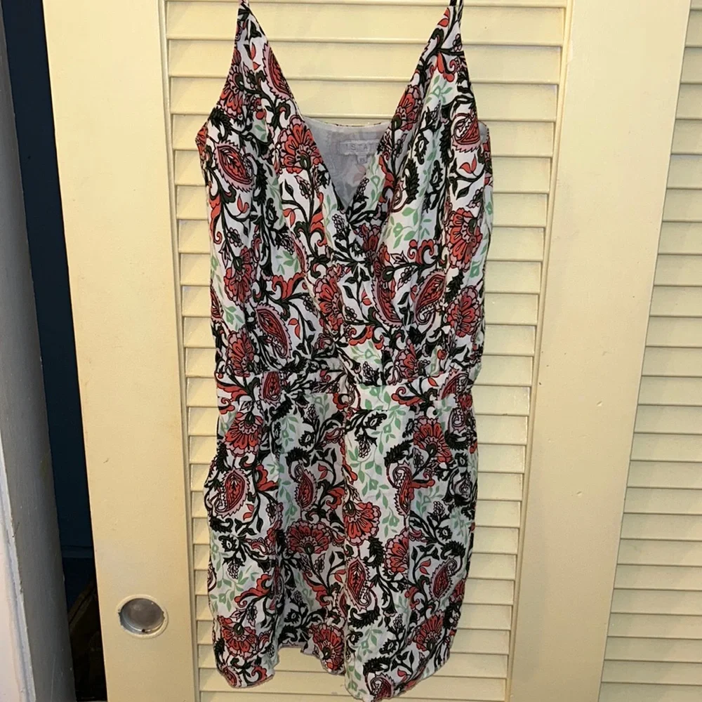 White Floral colored romper with pockets. Rarely worn. Good condition.