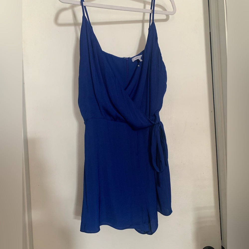 Royal blue romper, I would say it’s satin-ish fabric. Nice for going out! Never worn because I didn’t like the way it looked on me.