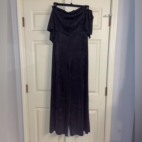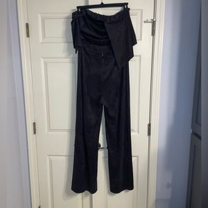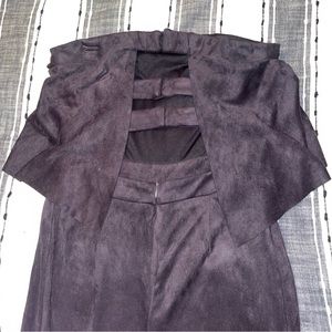 Dark grey/black velvety strapless romper. Open back. Size L