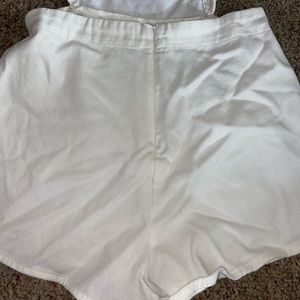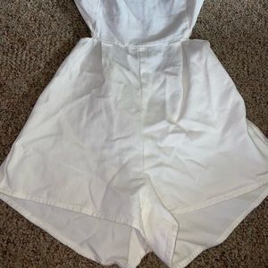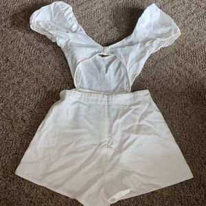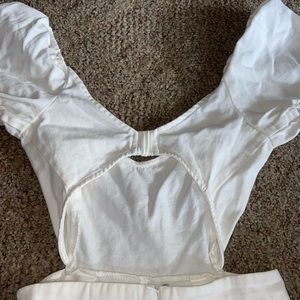 White romper. Puffy sleeves. Zip up bottoms. Upper/lower back open and sides.
