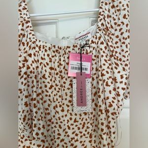 Brown and white/cream shorts romper. Square neck with stretchy sleeves. Wear them off the shoulder or on the shoulder. Zipper back