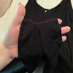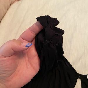 Black romper from asos size 22. Knot in sleeves, buttons in back. Cute for a swimsuit coverup!