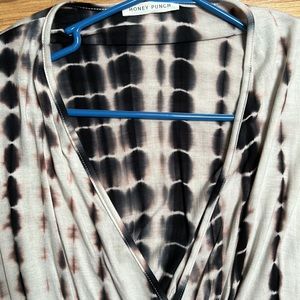 Super soft romper. Short sleeves and elastic waist. Wrap top. Very soft lounge material. Cute tie dye print that’s dark blue and purple colors. Tags not attached but never worn. Bought at a boutique never wore.