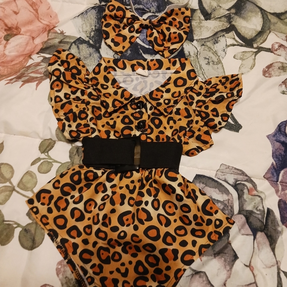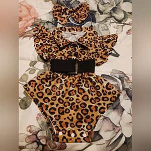 leopard print romper with belt and hair bow