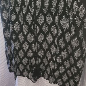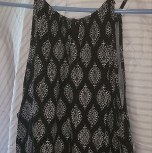 black and white romper with button in back at neck and cute tie at waist with tassel. never worn