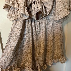 Floral Romper Features Wrap V-Neck Closed With A Safety Hidden Snap Button, Definitely A Summer Romper High Waist It’s Designed With Loose Fit Style