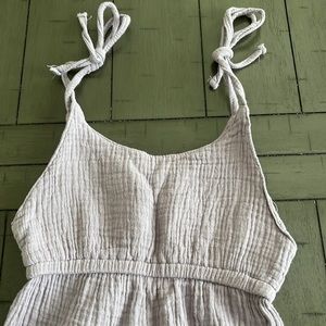 Lilac romper with adjustable toe straps. The photos do not do the color justice but it is a beautiful lilac color.