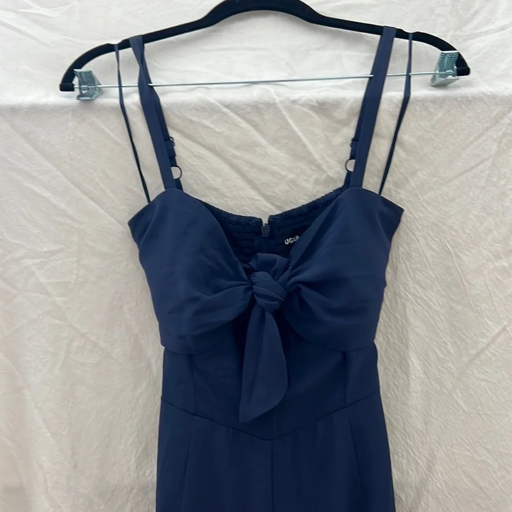 Perfect for wedding guest attire. Flowy pant legs, straps, zipper on back and back tie. Padded breast’s