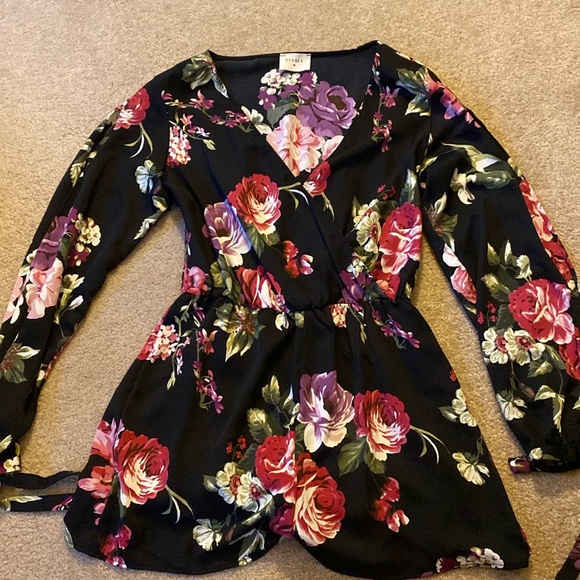 Romper with floral and tied sleeves. Gently worn