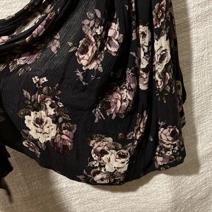 Wrap around back ( looks like a skirt from behind) and open flory shorts from the front. Faux wrap style to.