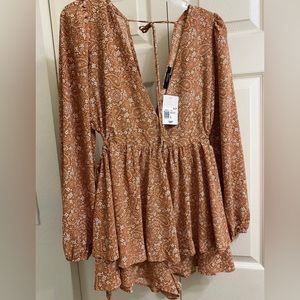 Beautiful all over paisley print piece with deep V front and back. This romper has cut out sides that can be adjusted to accentuate you figure, looks like a dress (skort) perfect for afternoon dinner or date night