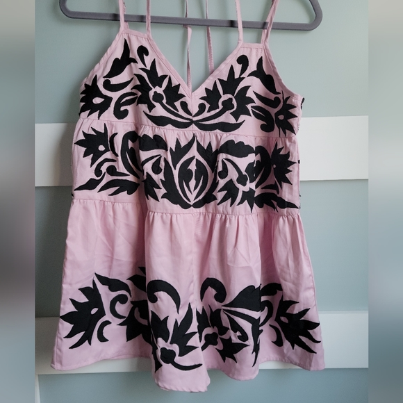 Free People Pink Black Everblue Embroidered Romper Womens Size S.