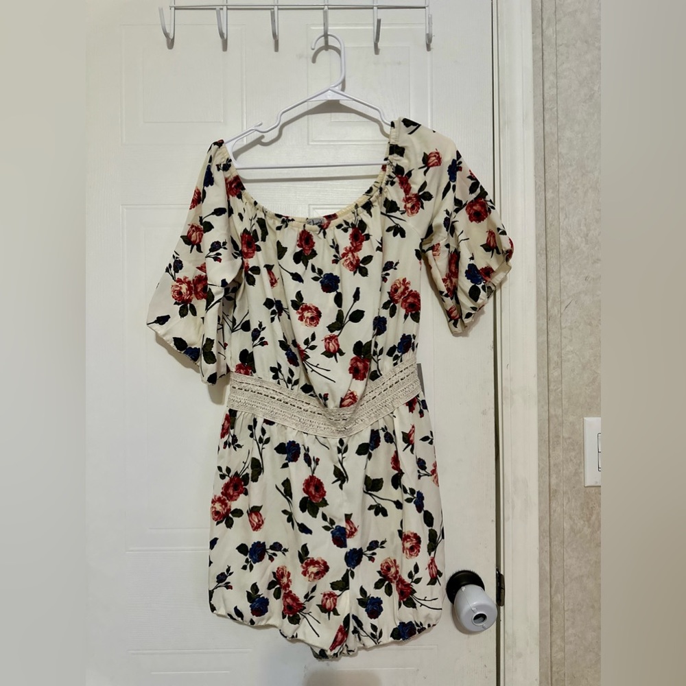 Size L cream colored romper with flowers
