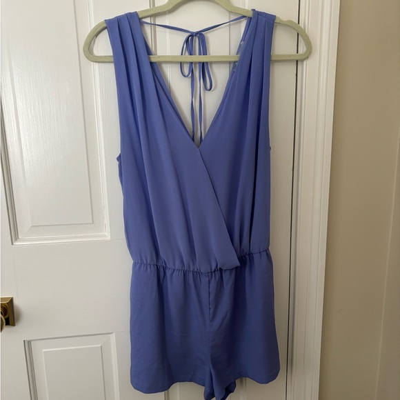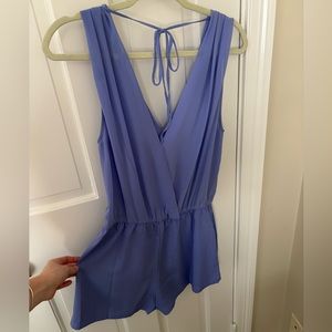 Perfect condition silky periwinkle romper with wrap front, tie back detail, pockets