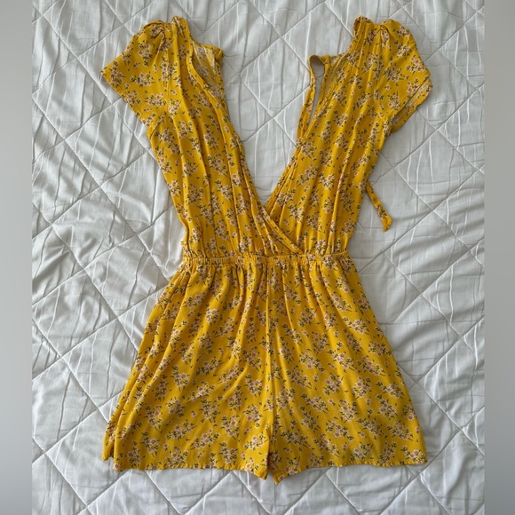 Floral romper with open back. Material has some stretch. Runs a little bit big