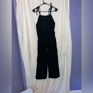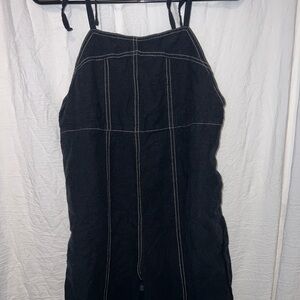 Urban outfitters romper, black with tan stitching. Comfy material, loose fitting and pockets! adjustable straps so could fit small/ extra small!