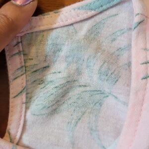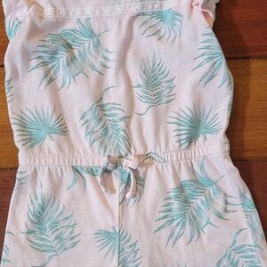 Cute pink and green, leaf romper with button back.