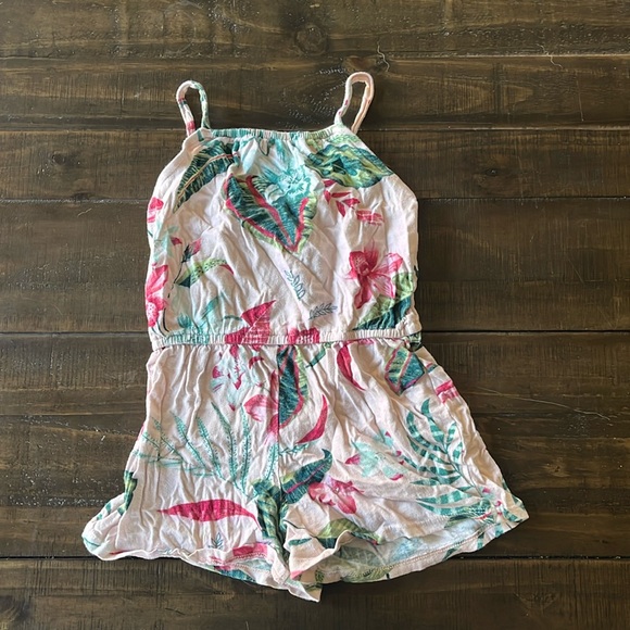 Pink romper with leaves and flowers (Hawaiian print)
