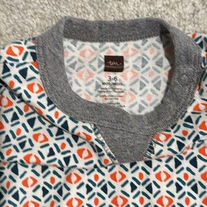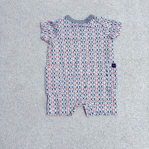 TEA cotton romper. Size 3-6 months. EUC! Snaps at crotch. Blue and orange pattern.
