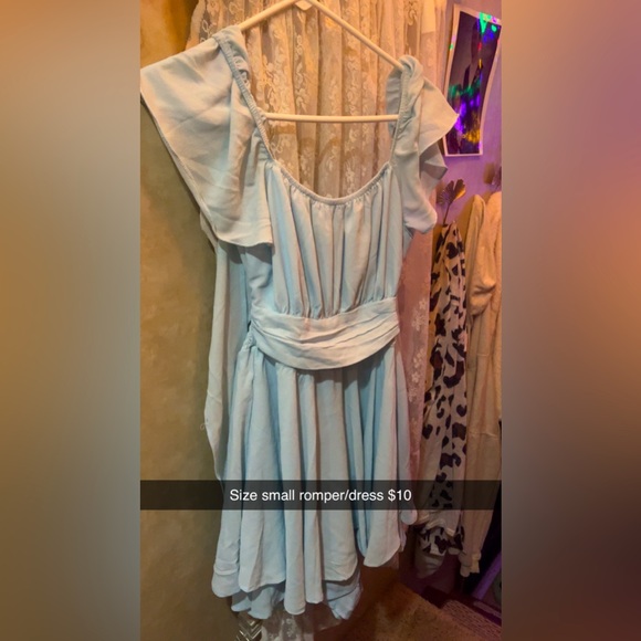 Got from amazon. I guesss im too short bc the legs in it are too long so it was a dress to me but it’s a romper. Nothing wrong with it im just too short for it. Light blue, size xs but could be a small.