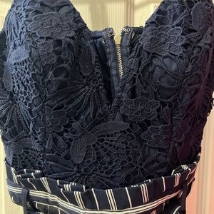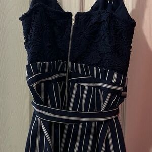 Blue and white romper with lace top. Worn once. Size small.
