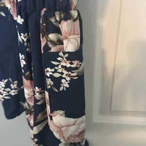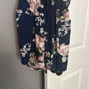 Blue , pink flowers, gold straps romper