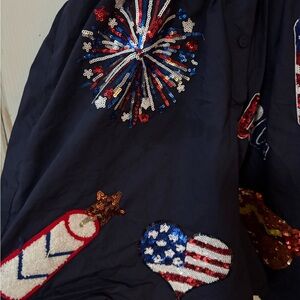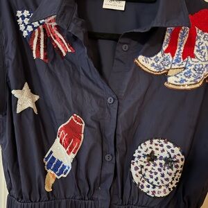 Patriotic style romper. Sequin designs. Worn once over July 4th. Size large, perfect for Labor Day!
