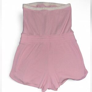 Pink and white waffle knit romper with drawstring waist