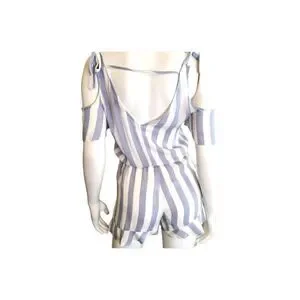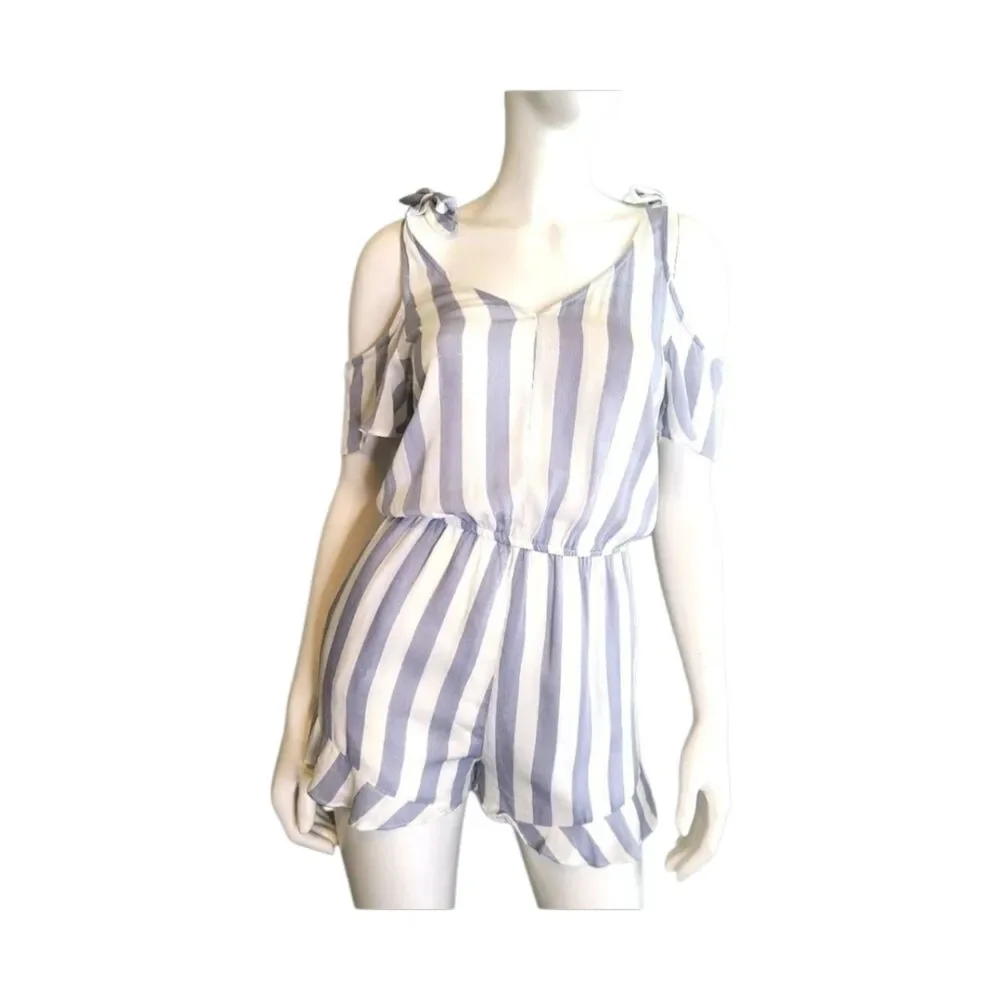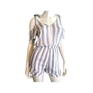 Blue and white striped, cold shoulder shorts romper. Size xs.