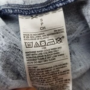 Romper Linen Smocked Wide Leg Cropped Pockets Blue Jumpsuit Scenic Print