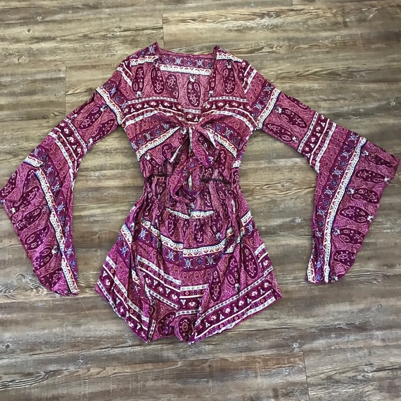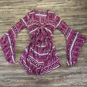 Paisley like pattern. Purple/Pink/Magenta romper, ties on the top. Only worn twice. Size medium.