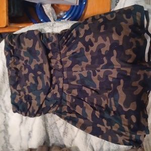 Romper bundle camo romper has pockets and is a size small the forest green romper doesn't have pockets and is a medium.